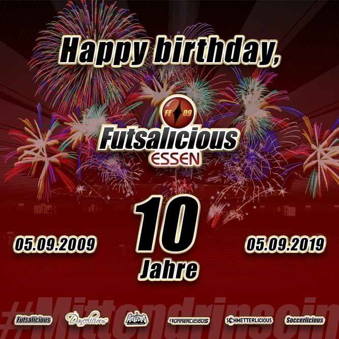 Aus „‘ne Saison spielen und dann mal gucken“ wurden zehn Jahre - Futsalicious Essen e.V., der Futsal-Verein der Stadt, feiert mit inzwischen drei Abteilungen Jubiläum. In entspannt-nostalgischer Atmosphäre beging unser junger Sportverein Futsalicious Essen e.V. am 7. September im Haus der Ruderriege Mark am Baldeneysee seinen 10. Geburtstag. Mit rund 40 Gästen, Mitglieder und Ehrengäste, gab es eine unterhaltsame Reise durch die bereits bewegte und bewegende Vereinsgeschichte....